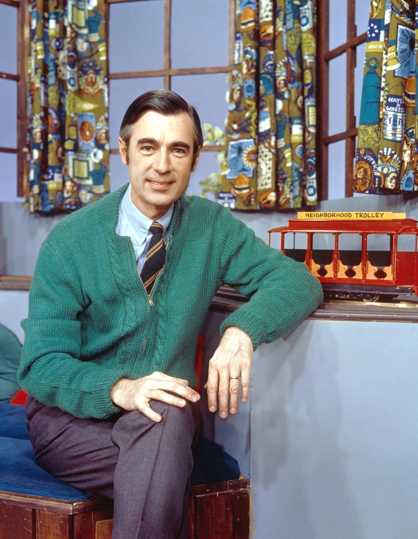 I don’t have memories of kindergarten in Middletown, New York, but I remember two unrelated events. My father, then age 27, had his first heart attack. But that was also the year that my father decided that although Sesame Street was fine for his children to watch, he wouldn’t allow us to watch Fred Rogers, for fear it would turn me gay. Oops!